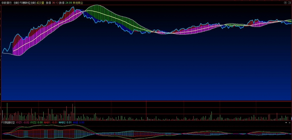 《枫叶红》分时指标作为指标名称,是因为它在趋势上行时,指标的图形会显示为像一张秋时的红叶形态,且叶子越大,上涨势态越猛。反之,出现绿叶时是跌势出现。所以《枫叶红》分时指标是以指标的图形形态来表示当前走势的实用指标。大凡用过分时指标的同学都知道,一些分时指标虽然加入了低点和高位信号,但随着趋势的改变,这些高低点位信号也在随着行走趋势在改变,是带有未来函数的是不能完全相信的。而《枫叶红》分时指标因她全部以均线源码为基础代码,不含有任何未来函数,所以指标不会出现失真和局部点位消失的现象。只要你能把握住红绿叶子的变化就可以操作好她。