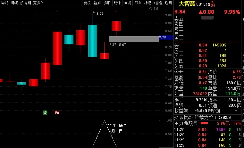 【金牛回调】指标通过独特算法精准挖掘牛股,发掘股价上涨的逻辑,锁定个股股价到当天低点位置后,进行算法提取预警出票。指标经过三月份A股实战,深度挖掘出大华股份、佰维存储高溢价涨幅的金牛股。【金牛回调】指标低位预警,提升当天溢价,主要对牛股上涨中形成的价格洼地,精准出票在短暂回调点实战获益,是回头牛的选股神器!