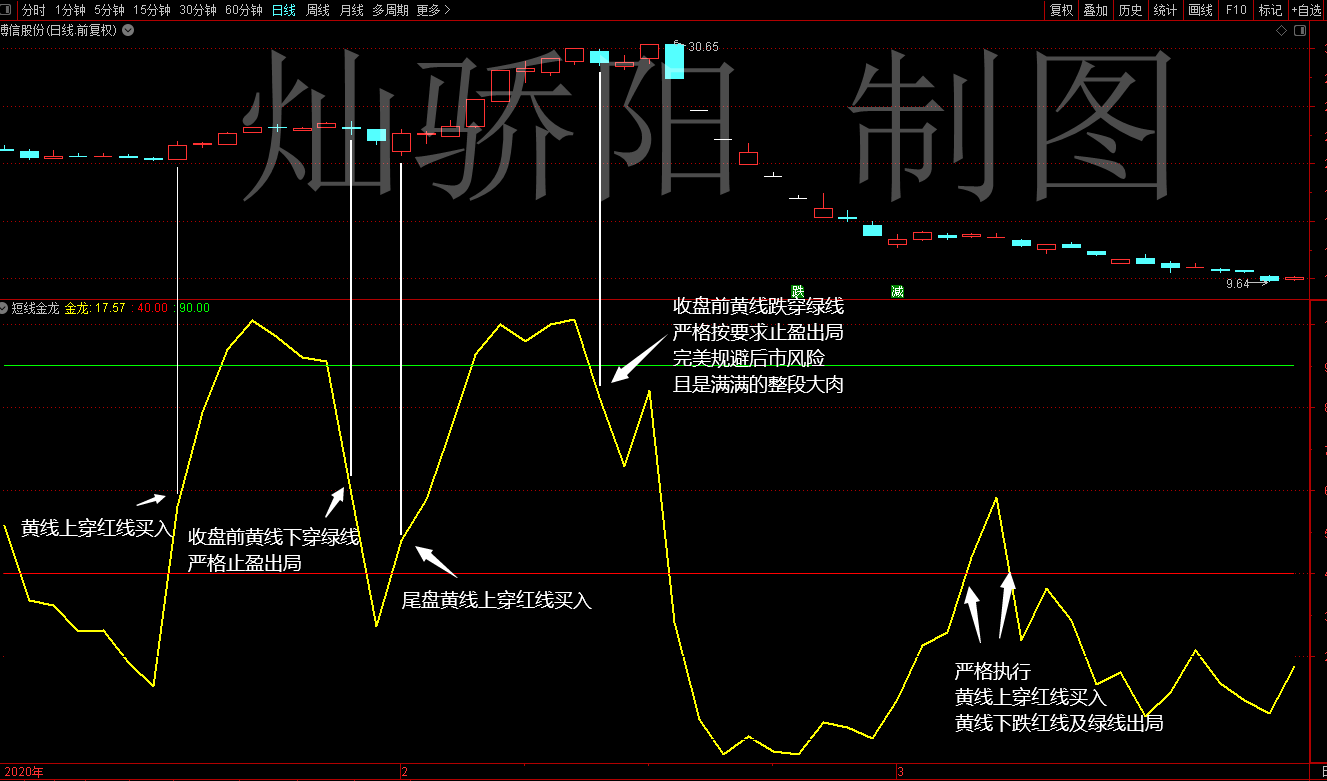 此指标的效果显示图,我截取的周期都是4~6个月之间的,保证我自己发的指标截图周期在不影响图片效果的前提下,尽可能的展示最长时间周期,让大家在大波段、中波段、短线中都看的明明白白,也能反映完整、真实的成功率,等真正了解指标后再购买。指标截图都是精挑细选各形态波段的个股,进行详细注解说明,按照K线图的注解,看过一遍就可完全掌握用法的精髓。